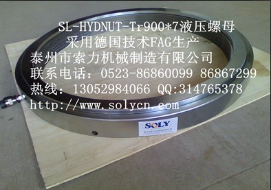 泰州索力是中国规模最专业的液压螺母生产企业,本产品替代进口SKF/FAG液压螺母订购周期长、成本高、维修不及时的缺点,SOLY牌液压螺母 外形美观,不容易磕碰损坏,所有 产品通过ISO9001认证,所生产产品包括液压千斤顶,液压弯管机,液压钢丝绳切断器,液压螺帽破切器,液压扳手,液压拉马及电力施工机具,轴承加热器等产品,质量都是上乘,货真价实,决不以小冒大、以次充好,SOLY牌产品是行业品牌产品,销量居首,联系电话0523-86860099 86867568 86867299 http://www.solycn.com 欢迎广大的朋友来人考察指导。