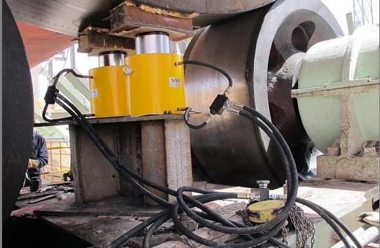 下面是本公司生产500T超高压电动液压千斤顶在大型水泥厂设备维修是的应用
