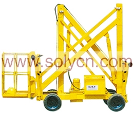 曲臂式升降机特点: (1)新型的全液压自行式专用底盘。研制的具有完全自主知识产权的自行式高空作业升降平台车,采用了机电液一体化、可靠性设计和计算机辅助设计等技术,成功地研制了一种全液压驱动、自行式专用底盘,突破了以往国内高空作业升降平台车只能采用汽车或起重机底盘改装设计的限制。 (2)带载行驶、作业稳定性好。底盘结构突破了传统的设计理论和方法,通过优化上车平台总体布局与载荷分布,减少了重心偏移。采用独特的大角度后仰式铰点结构,合理设置多种配重模块,有效地平衡了工作力矩。采用H型变截面复合箱梁剐性车架和高负荷实心橡胶轮胎,增加了底盘整体刚度,保证了整机行驶、作业过程的稳定性,实现了高空作业升降平台车带载行驶的功能。 |