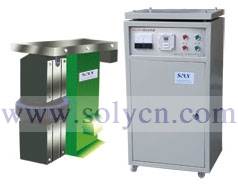 4、被加热工件放置到主机铁蕊中间活动轭铁的下面,轻轻向下移动,使之与工件吻合(若工件厚度尺寸不变,可调节主机后杠杆桥下面的定位螺钉,使轭铁与工件保持2mm的间距,以方便连续操作)。至此,调试结束,可投入使用。